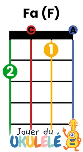 L’accord de Fa majeur (F) fait partie des accords de base pour apprendre le ukulélé. Vous pouvez consulter notre liste des accords de ukulélé.