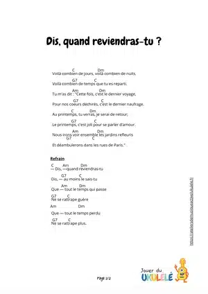 Vous cherchez une version simple de "Dis quand reviendras-tu" au ukulélé ?